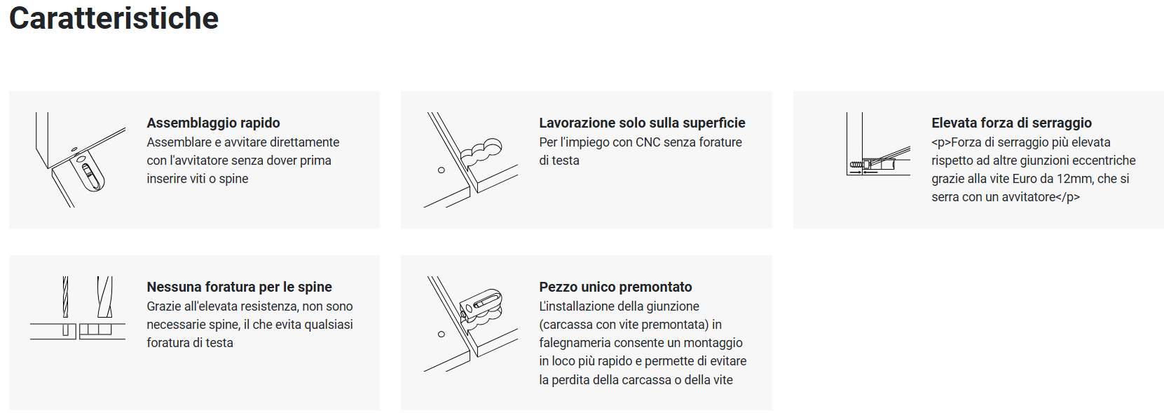 • Giunzione per strutture di mobili che consente di risparmiare tempo lungo l'intera catena di produzione