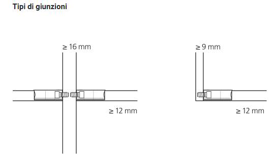 • Giunzione incassata in modo che la giunzione sia a filo con la superficie del pannello
