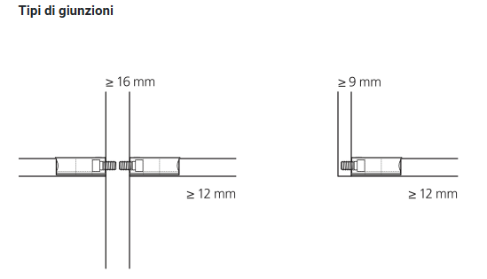 - Giunzione incassata in modo che la giunzione sia a filo con la superficie del pannello