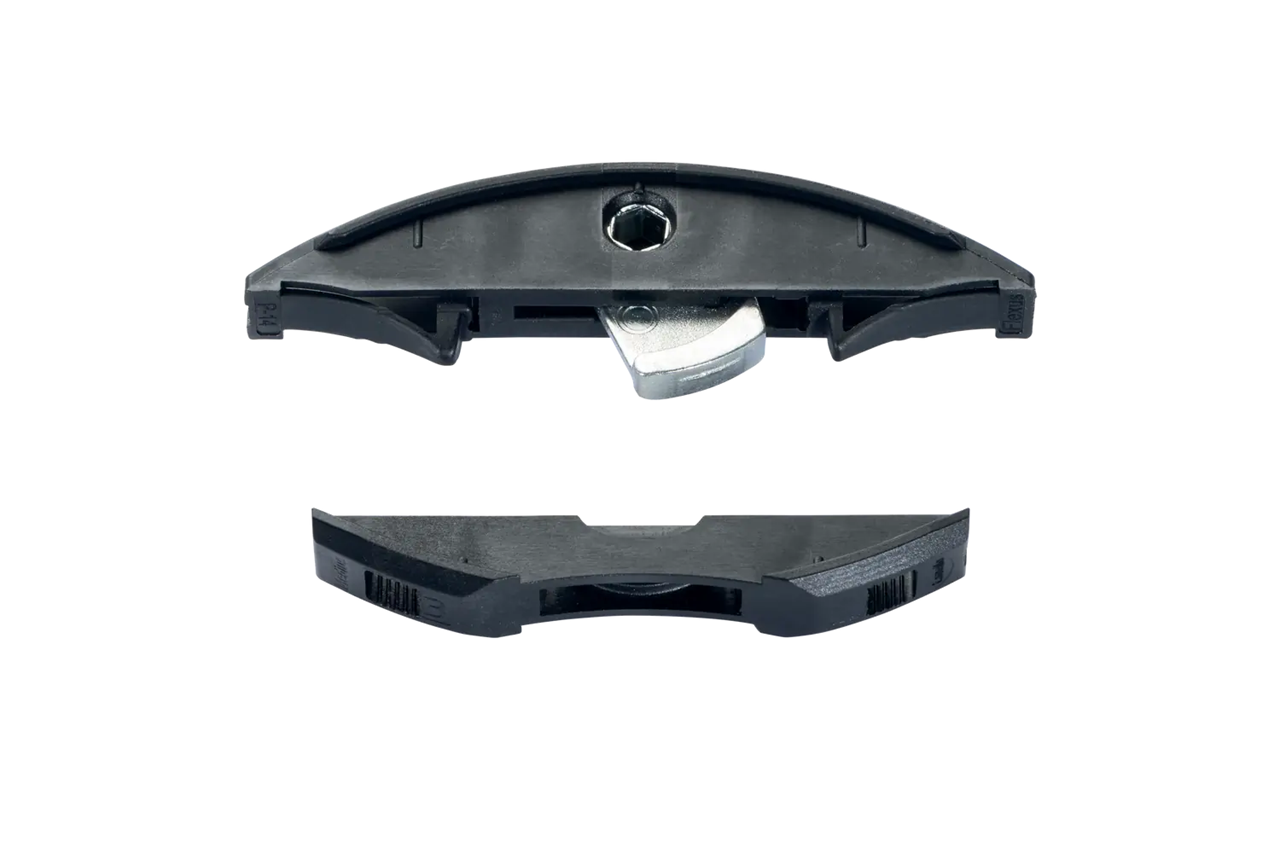 Clamex P-14/10 Flexus è una giunzione per mobili smontabile che si installa nel pezzo in pochi secondi con la fresatrice Zeta P2. Grazie al foro di accesso minimo di 6 mm Clamex P-14/10 Flexus si collega e si scollega con forza come una giunzione a eccentrico tramite una leva. Sviluppata come complemento di Clamex P-14, Clamex P-14/10 Flexus presenta gli stessi vantaggi. Tra questi figurano l'elevata estetica, dovuta alle giunzioni quasi completamente nascoste, il piccolo foro di accesso, le giunzioni angolari in diverse angolazioni e le giunzioni resistenti ma sempre smontabili. A differenza di Clamex P-14, Clamex P-14/10 Flexus non presenta perni di posizionamento rigidi. Questi sono flessibili e presentano una smussatura su entrambi i lati. In questo modo un pezzo può essere inserito tra due lati, agganciato e nuovamente rimosso. Questa funzione consente di inserire ripiani o ripiani inclinati dopo che il mobile è già stato montato. Il ripiano viene mantenuto nella posizione corretta finché i pezzi non sono collegati con la chiave esagonale, poiché i perni di posizionamento scattano in posizione quando vengono inseriti. Se un mobile articolato è collegato con diverse parti verticali e orizzontali, l'ordine di montaggio delle parti del mobile è irrilevante. I perni di posizionamento servono anche a garantire la resistenza alla torsione in caso di utilizzo di una sola giunzione, come ad esempio uno zoccolo. In questo modo si rende superfluo l'impiego di un tassello di raddrizzamento, come avviene di solito per le giunzioni a eccentrico.