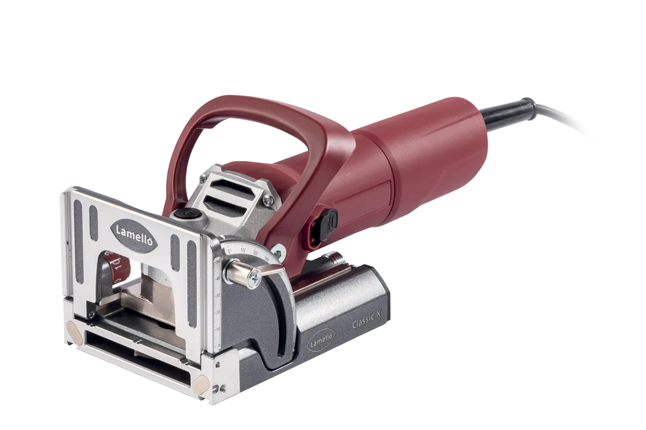 Classic X è la fresatrice originale dall'inventore del sistema Lamello e realizza una fresata precisa di 4 mm per le giunzioni in legno. La collaudata e sofisticata fresa a scanalare è veloce e versatile. Costituisce la base per l'ampia gamma di giunzioni fisse, autobloccanti e smontabili. Il sistema Lamello è un sistema di giunzione estremamente efficiente e su misura per pannelli e consente la realizzazione di assemblaggi di mobili e angolari in ogni angolo. La fresatura identica su entrambi i pezzi senza adattamento della profondità di fresatura riduce le possibili fonti di errore. Inoltre, la tolleranza d'inserimento laterale rende il sistema efficiente nell'applicazione, poiché non sono necessari fermi o ausili di posizionamento. La fresatrice per tasselli piatti Classic X si contraddistingue per i suoi componenti in alluminio lavorati con precisione. Le superfici di battuta fresate sulla piastra di base, sul ribaltino e sulla battuta angolare consentono un appoggio preciso sul pezzo. La precisa interazione tra le parti mobili durante la fresatura crea fresate parallele per una perfetta precisione d'incastro dei pezzi. Un altro vantaggio della Classic X è il punto di rotazione fisso del ribaltino, grazie al quale la fresata è sempre esattamente nella stessa posizione. In questo modo il ribaltino può essere girato verso l'alto o verso il basso ripetutamente anche durante il lavoro, senza che ciò causi imprecisioni dimensionali. Il punto forte della fresa a scanalare di Lamello è tuttavia la battuta angolare multifunzionale. Viene spinta sulla piastra di base per garantire una movimentazione sicura della macchina durante la fresatura della superficie. Si utilizza anche per regolare con precisione la posizione della scanalatura da 0 a 50 mm o per realizzare angolari ancora più precisi grazie al posizionamento sulla superficie esterna del mobile.