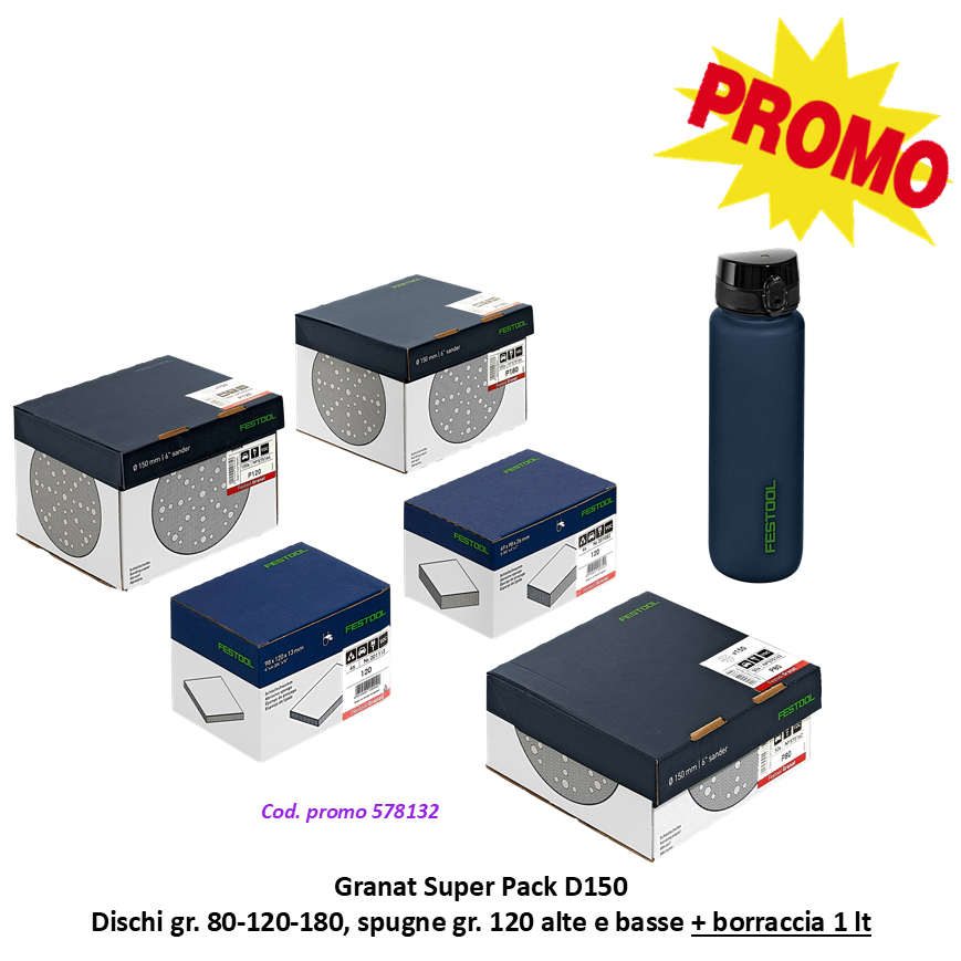 Granat Super Pack D150 Dischi gr. 80-120-180, spugne gr. 120 alte e basse + borraccia 1 lt - PROMO