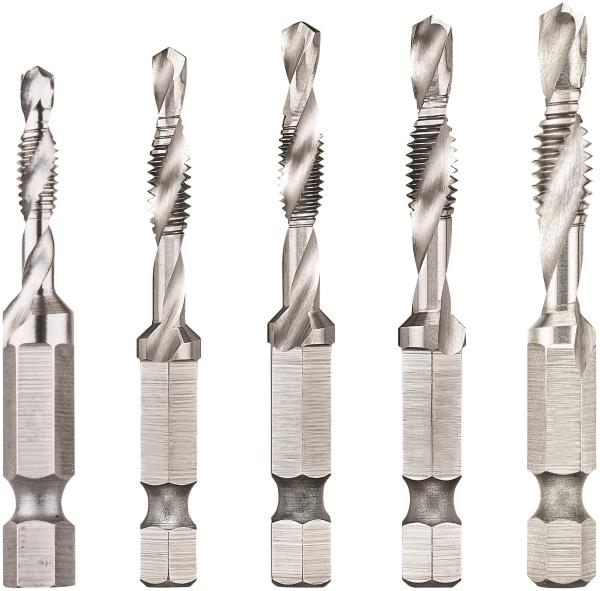 5 Punte attacco 1/4" per forare, maschiare e svasare misure M4-M5-M6-M8-M10