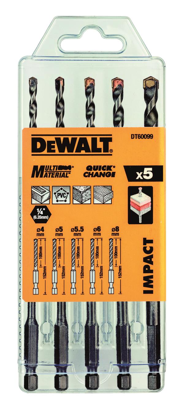 Set 5 Punte Multimateriale Muro-Legno-PVC Attacco esagonale ¼"