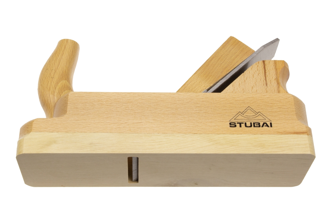 La pialla doppia è dotata di una doppia lama in acciaio al carbonio per utensili (58 HRC) con aletta. Viene utilizzata per la lavorazione fine di superfici piane, per la piallatura di grandi superfici e per la smussatura di bordi di taglio al posto di un tampone abrasivo. L'inclinazione della lama è di 45°. L'aletta rimuove i trucioli di piallatura. Il corpo pialla è realizzato in legno di faggio, la suola in pregiato faggio bianco. Entrambi i legni sono essiccati al 10% di umidità residua. I bordi sono dotati di raggi. Una pialla maneggevole ed ergonomica.
