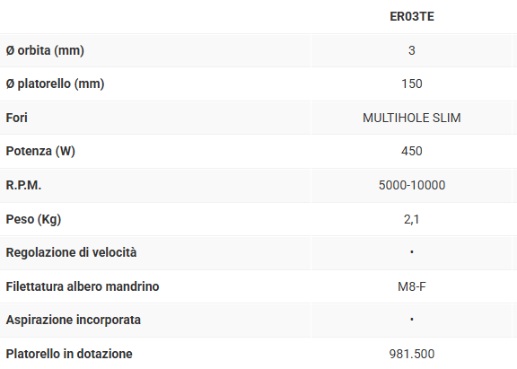 Dotato dell’innovativo tampone RUPES a 15 fori: massima capacità di aspirazione della polvere a tutela della salute dell’operatore