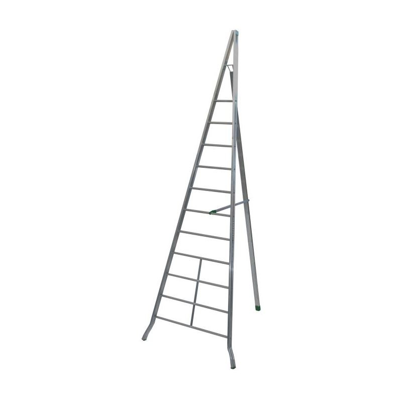 AGRI è scala in alluminio specifica per uso agricolo, per la manutenzione di piante e siepi oltre che la raccolta di frutta.I gradini a trapezio inclinato favoriscono le lunghe soste dei piedi che appoggiano in piano e non stancano le gambe, sono passanti al montante, ribordati e saldati per massima sicurezza strutturale.Montanti tubolari nervati 30x65 mm.Telaio di salita ampiamente conico per la totale stabilità anche su terreni sconnessi.La scala termina a punta in alto per infilarsi nei rami.