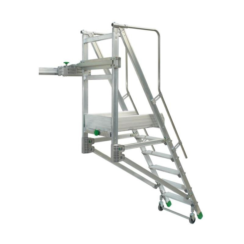 BINARY è scala a castello scorrevole su rotaia fissa a muro o su struttura portante. Interamente d’alluminio, scorre facilmente sulla guida di aggancio tramite il carrello in alluminio fuso dotato di 12 cuscinetti.Ampia pedana di lavoro. È scala di facile montaggio e sicurezza totale.