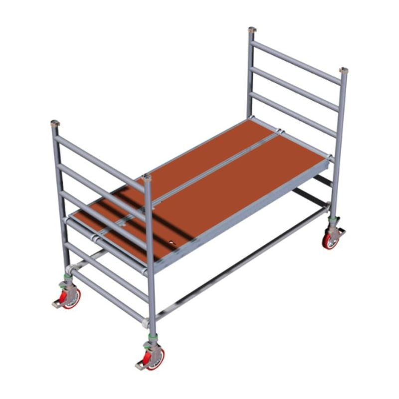 è trabattello Europeo tutto alluminio in tubolari Ø 50 mm saldati. Di dimensioni medio-grandi è riservato ad uso professionale e trova applicabilità in lavori edili, decorazioni e finiture, impiantistica generale sia per uso interno che esterno edifici.
