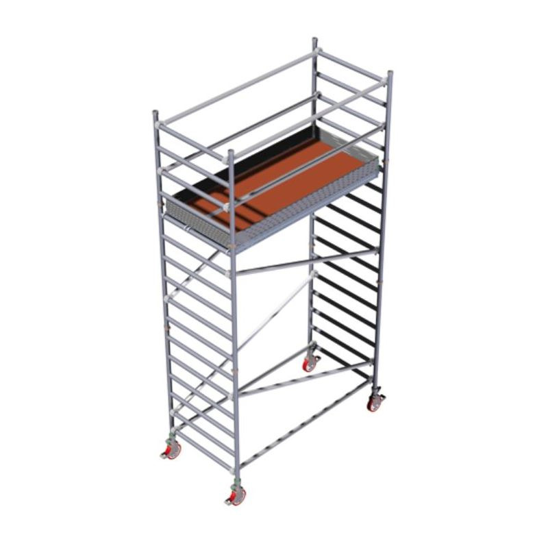 è trabattello Europeo tutto alluminio in tubolari Ø 50 mm saldati. Di dimensioni medio-grandi è riservato ad uso professionale e trova applicabilità in lavori edili, decorazioni e finiture, impiantistica generale sia per uso interno che esterno edifici.