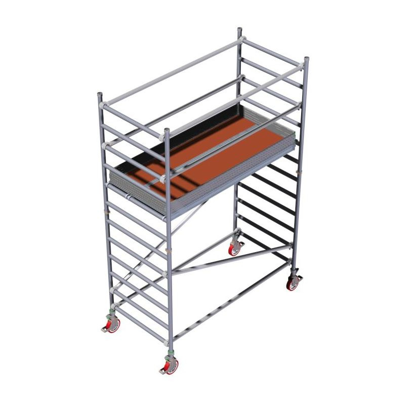 è trabattello Europeo tutto alluminio in tubolari Ø 50 mm saldati. Di grandi dimensioni, riservato ad uso professionale, trova applicabilità in lavori edili, decorazioni e finiture, impiantistica generale sia per uso interno che esterno edifici.
