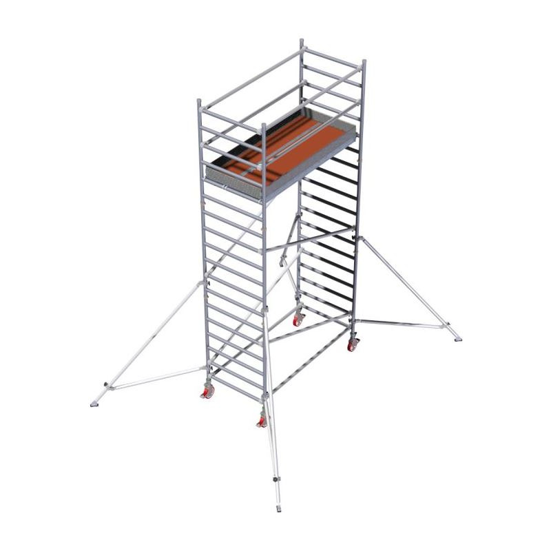 è trabattello Europeo tutto alluminio in tubolari Ø 50 mm saldati. Di grandi dimensioni, riservato ad uso professionale, trova applicabilità in lavori edili, decorazioni e finiture, impiantistica generale sia per uso interno che esterno edifici.