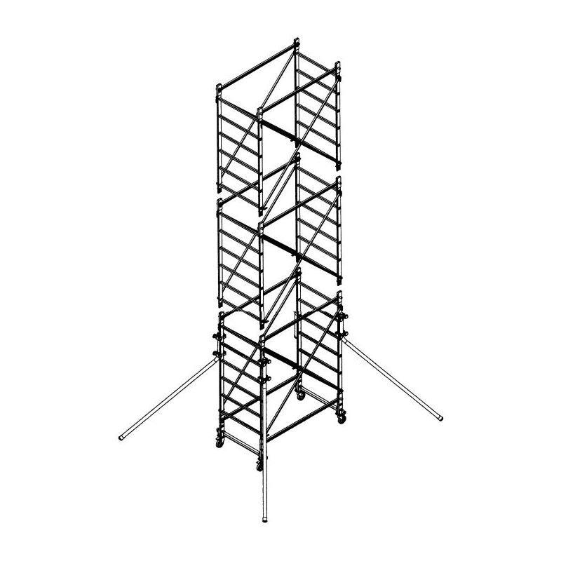 è trabattello professionale tutto in alluminio di rapido montaggio. Grande solidità e fermezza grazie alle traverse con crocere in alluminio fuso che squadrano e legano la struttura ad ogni alzata.