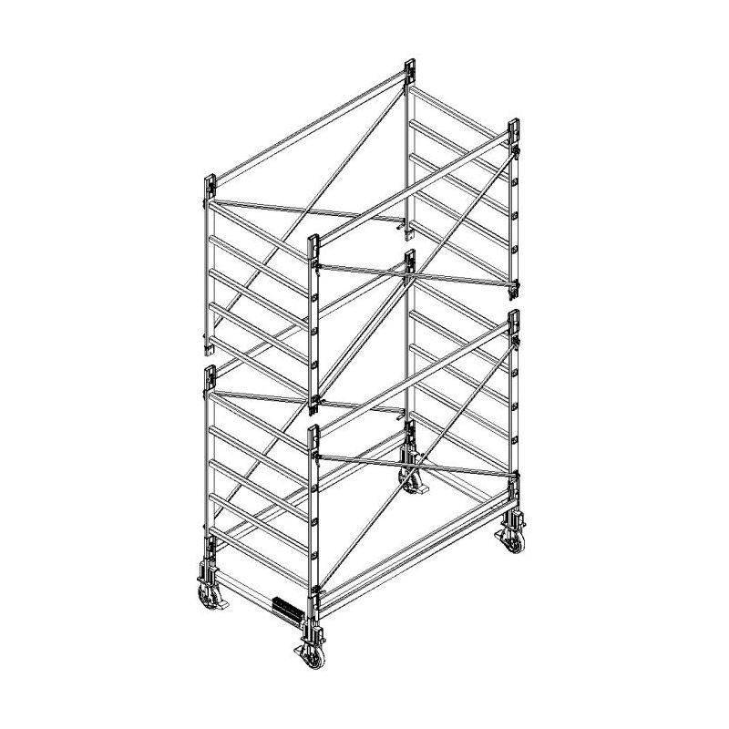 DOGE 80 è il grande Euro trabattello professionale d'alluminio con traversini quadri maggiorati 40x40 mm che collegano le ampie luci delle spalle senza bisogno di rinforzi aggiuntivi. Crocere in alluminio fuso e traverse laterali legano ogni alzata.