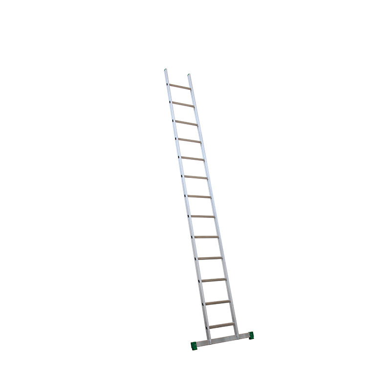 PRIMA/S è scala singola d’appoggio in alluminio con pioli 30x30 mm a rombo inclinati di 68° che garantiscono l’appoggio in piano dei piedi ed il non affaticamento delle gambe (brevetto). La scala porta di serie, sotto i calzari, i fori per l’applicazione eventuale di piedi snodati.
