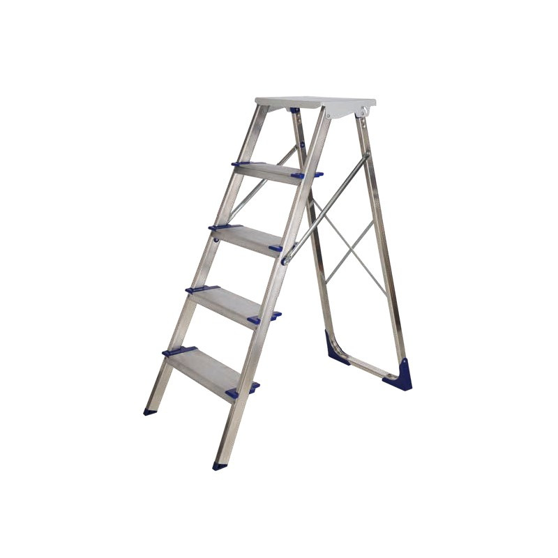 Sgabello in alluminio monosalita con gradini maxi profondi 120 mm fissati con tecnica auto-perforante.