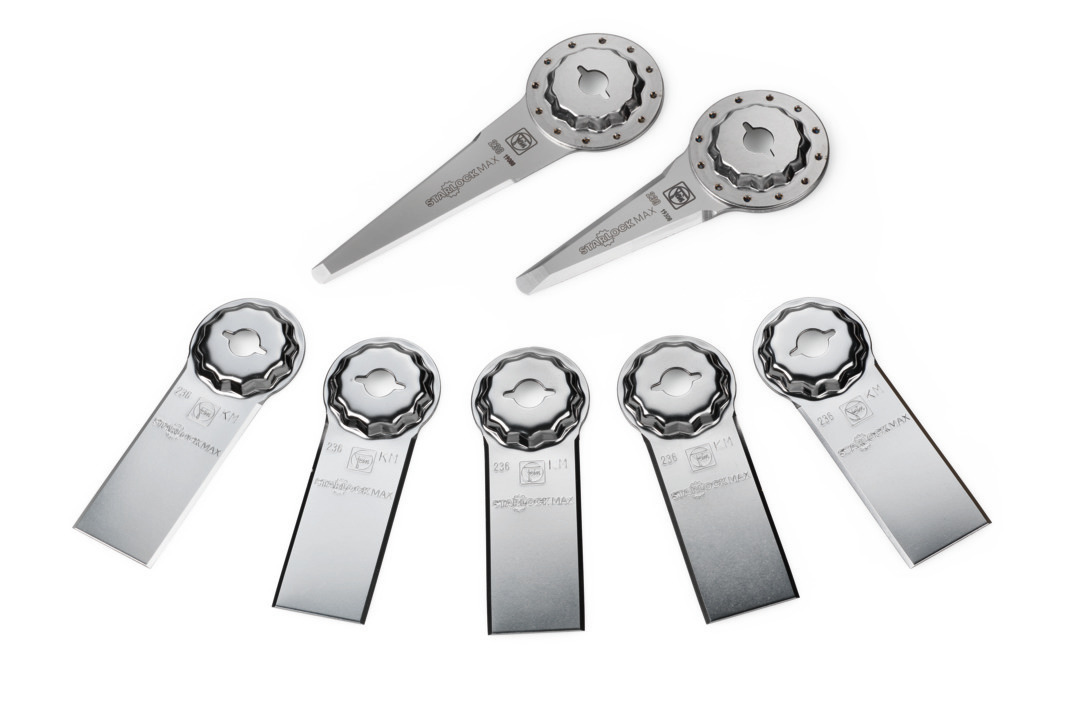 Set di 7 coltelli per il risanamento di fughe di dilatazione profonde fino a 90 mm. Adatti agli utensili multifunzione FEIN con attacco StarlockMax così come a tutti gli altri utensili multifunzione comuni con attacco StarlockMax. Il set offre un interessante risparmio rispetto al singolo acquisto. Contenuto: 1 coltello, diritto (65 mm), 1 coltello, diritto, forma molto lunga (69 mm), 5 coltelli universali, diritti (60 x 30 mm).