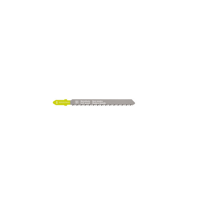 Linea Profi|Lama per seghetto alternativo per legno.|Adatto all'uso nei seguenti materiali: Legno, legno tenero, legno da costruzione, piani di lavoro per cucina, compensato, multiplex, listellare, MDF, truciolato. Impressiona con tagli molto veloci ed estremamente puliti.|PU=5 pezzi.