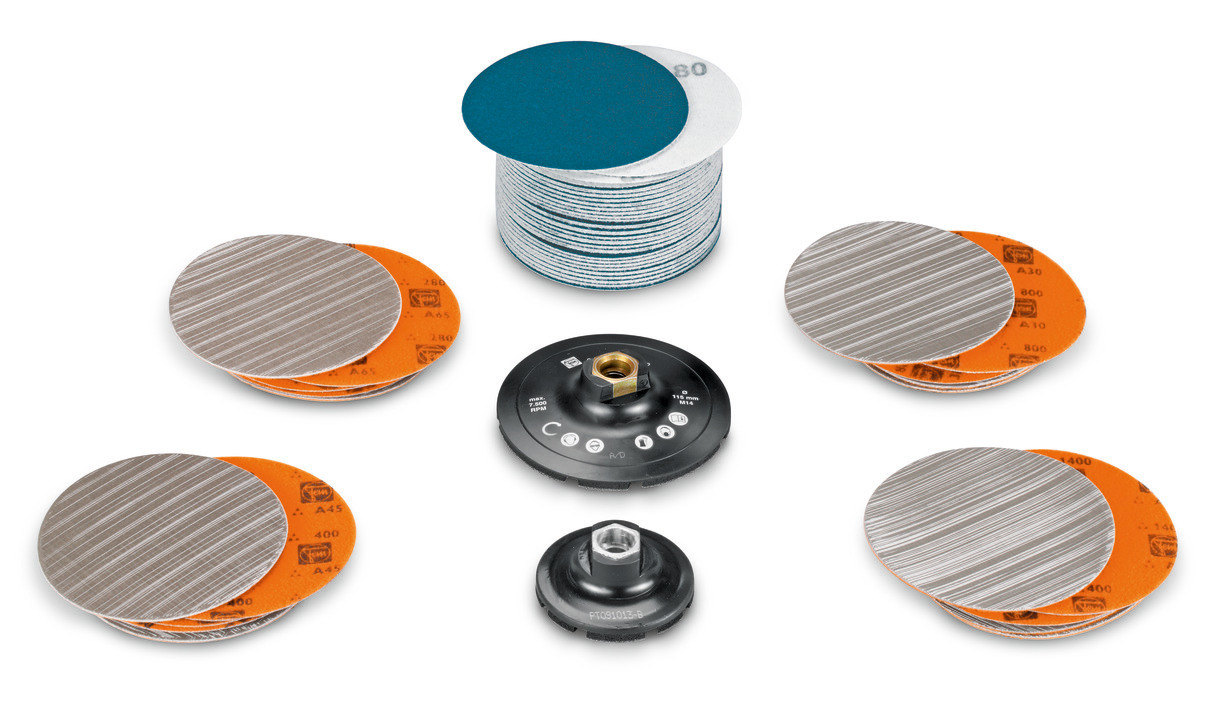 Rimozione efficace e rapida di graffi; preparazione ottimale per la lucidatura grazie alla realizzazione di una levigatura idonea; nella preparazione della lucidatura: elevata velocità di asportazione in minor tempo. Composto da: 5 fogli abrasivi Pyramix, grana 280 (6 37 17 239 01 0), 5 fogli abrasivi Pyramix, grana 400 (6 37 17 240 01 0), 5 fogli abrasivi, grana 800 (6 37 17 241 01 0), 5 fogli abrasivi Pyramix, grana 1400 (6 37 17 242 01 0), 1 platorello autoraffreddante Ø 75mm (6 38 06 196 01 0), 25 fogli abrasivi, grana 80 (6 37 28 135 01 0), 1 platorello autoraffreddante Ø 115 mm (6 38 06 193 01 0)