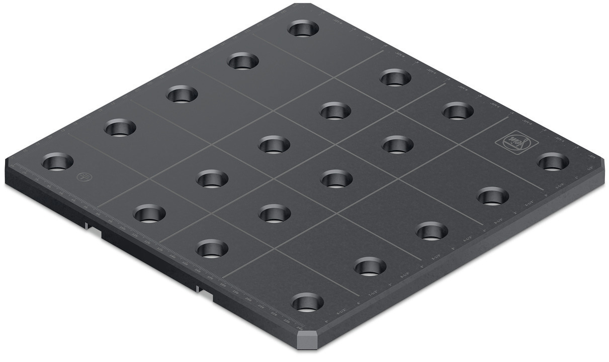 Resistente piastra di saldatura con un diametro di foratura di 16 mm su 250 x 250 mm. Elevata protezione superficiale grazie alla nitrurazione al plasma e con fori predefiniti per elementi Demmeler e Siegmund.|Lo straordinario sistema modulare garantisce una tenuta sicura nelle più svariate situazioni di lavoro. |Compatibile solo con il magnete permanente VersaMAG di FEIN (32172050020).