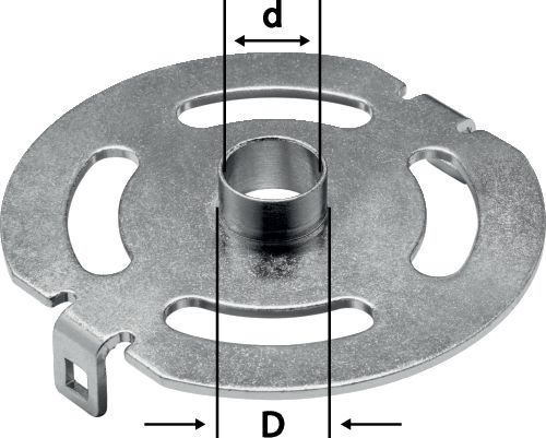 Anello a copiare per una guida sicura della fresatrice quando si esegue la fresatura con una dima. Non importa quale sia la forma della dima.
