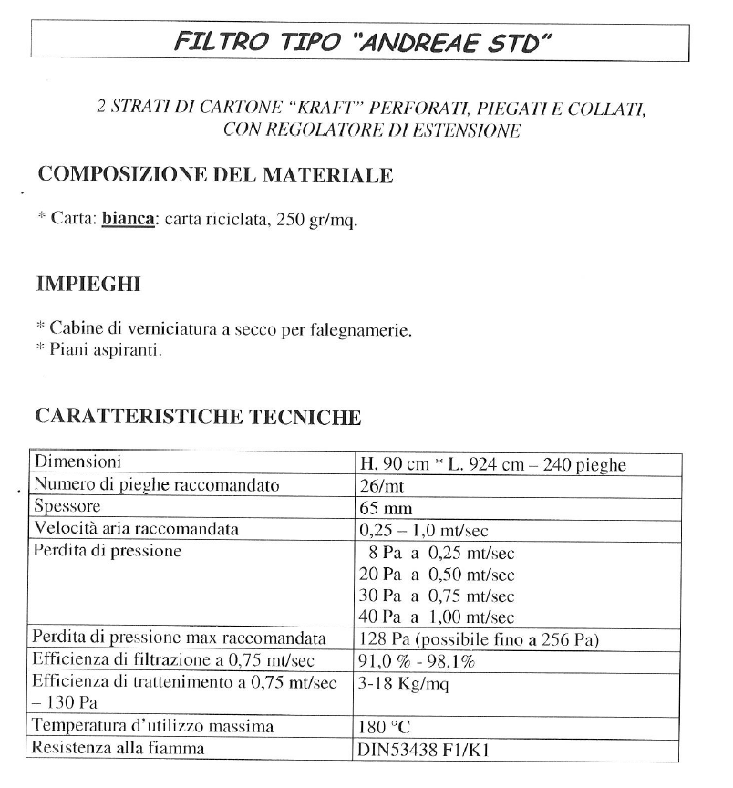 FILTRO CARTONE PER CABINA ANDREAE