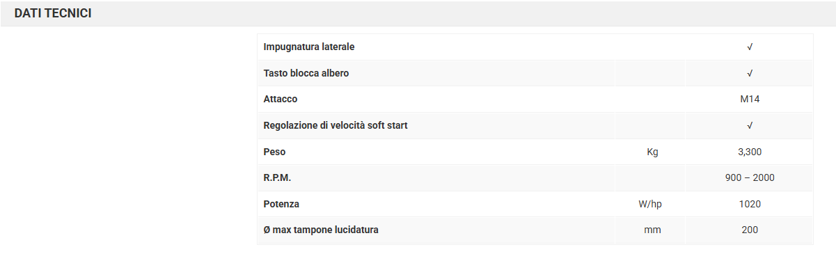 Regolazione elettronica della velocità Soft start Impugnatura laterale montabile sia a destra che a sinistraMotore protetto con resina epossidica