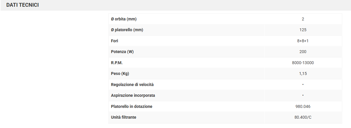 Mini levigatrice rotorbitale, Platorello con doppia foratura per utilizzare carte a 8 fori con interasse standard da 65 mm e interasse speciale da 90 mm
