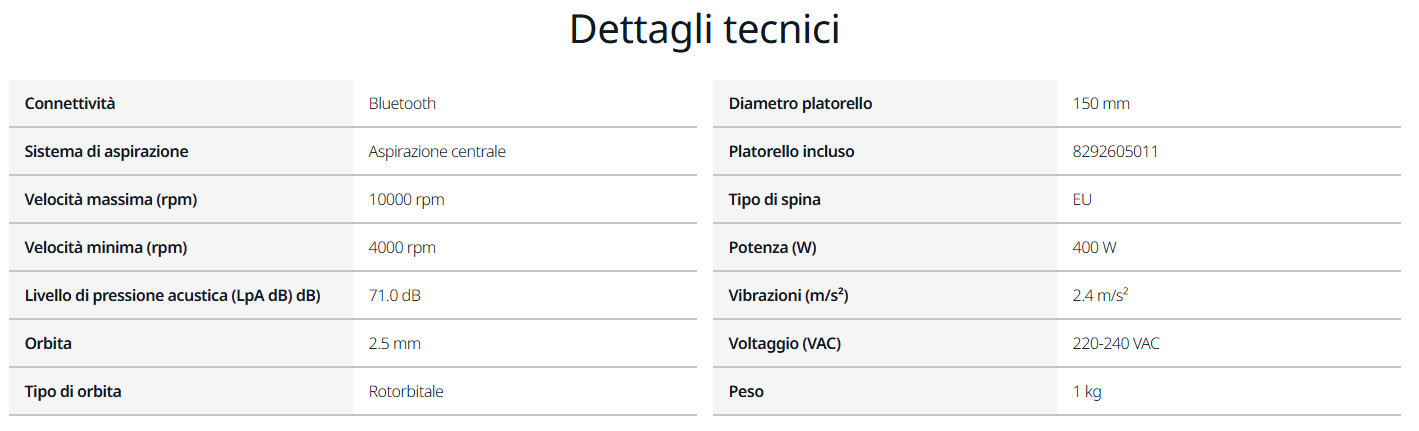 - velocità costante, ideale per affrontare tutte le applicazioni di levigatura;
