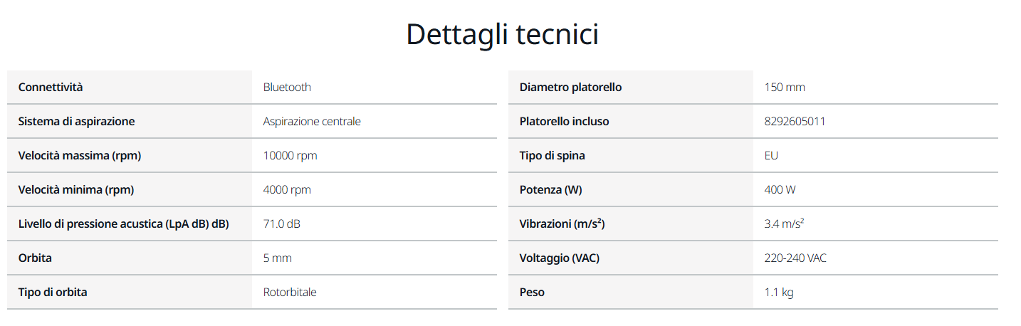 - velocità costante, ideale per affrontare tutte le applicazioni di levigatura;
