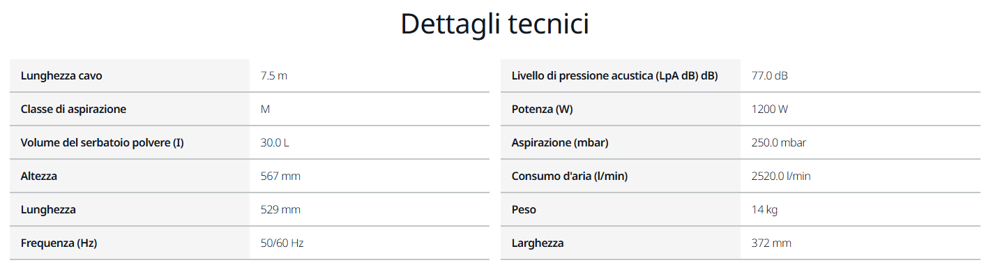 · Ampio serbatoio da 30 l per un uso prolungato grazie alla minore necessità di cambio del sacchetto