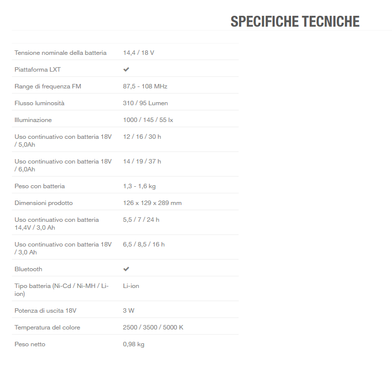 La novità è quella di aver integrato un corpo illuminante (lanterna) con diversi settaggi di luce (ad esempio luce calda, luce fredda e luce di profondità installata sulla parte superiore che ha lo scopo di far luce laddove necessita anche in movimento) ad una unità radio Con il programma OUTDOOR Makita vuole garantire la stessa affidabilità come per gli ambienti professionali.