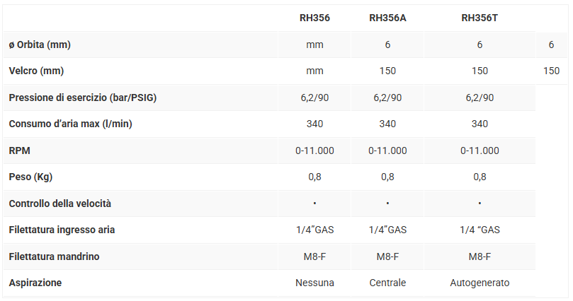La levigatrice pneumatica palmare orbitale casuale con pad da 150 mm, disponibile nei modelli senza vuoto (RH356), aspirapolvere centralizzato (RH356A) o autogenerato (RH356T), la levigatrice pneumatica a doppia azione Skorpio III da 6 mm offre un perfetto equilibrio rimozione del materiale, comfort dell’utente e controllo. È la levigatrice palmare a doppia azione più popolare di RUPES.