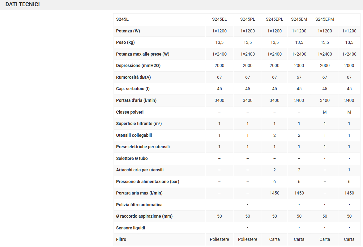 Le caratteristiche principali degli aspirapolvere S2 sono: