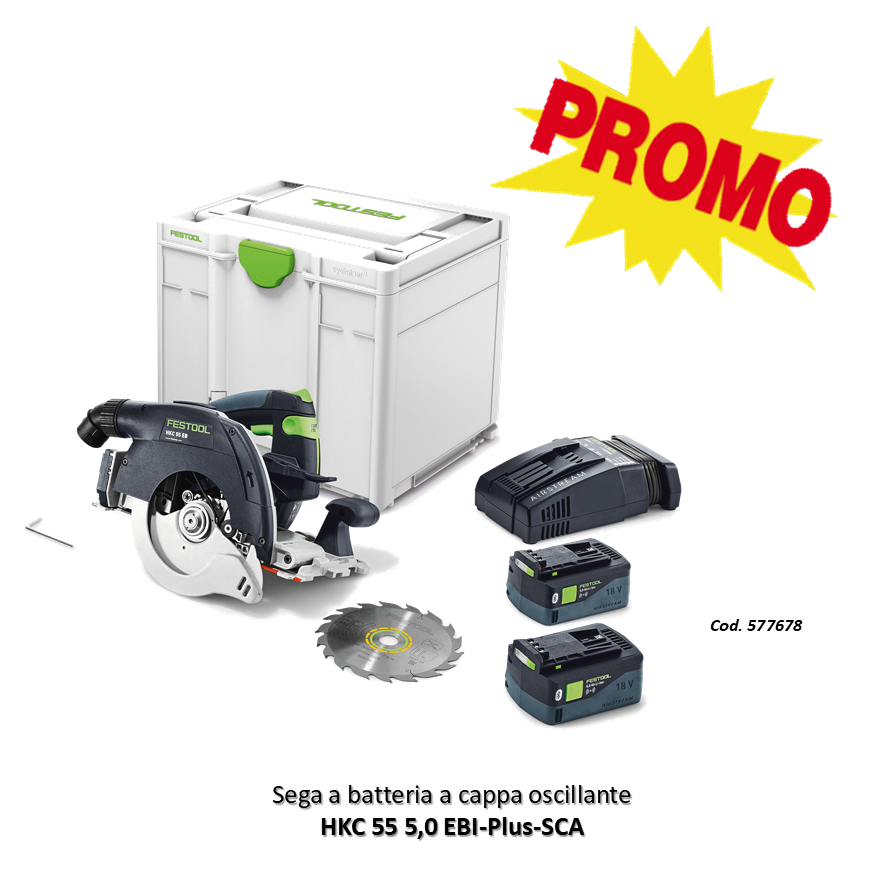 Che sia su di un tetto o su di un solido pavimento, che si tratti di tagli angolati ripetibili e precisi e tagli guidati, in combinazione con i binari per tagli diagonali FSK e binari di guida FS o precisi tagli inclinati – la sega circolare portatile HKC 55 mostra ciò che oggigiorno sono in grado di fare le moderne seghe circolari portatili. E lo dimostra ad ogni taglio. Grazie alla sua versatilità, alla flessibilità di impiego ed alla massima precisione. Ogni giorno di nuovo. E le batterie Festool Bluetooth® garantiscono un comodo utilizzo con l'unità mobile di aspirazione Festool: in combinazione con un'unità mobile di aspirazione Bluetooth®-compatibile, esse fanno sì che in modalità AUTO l'aspiratore venga avviato automaticamente all'accensione della sega circolare a batteria.