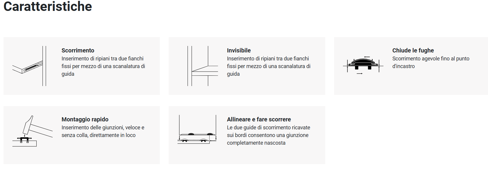 • Giunzione invisibile per inserire ripiani o divisori in strutture già montate