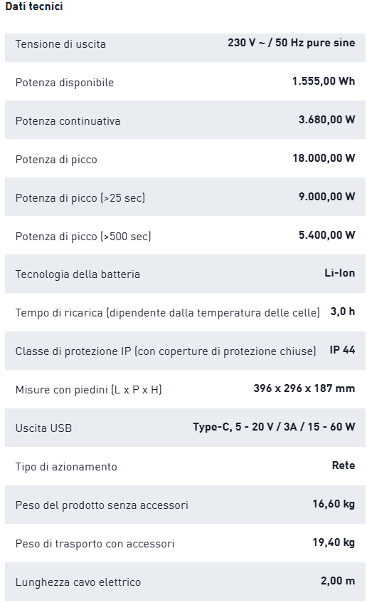 La SYS-PowerStation eroga energia elettrica. Anche dove, altrimenti, non ve ne sarebbe disponibile. Questo sistema di accumulo energetico ad alta efficienza consente l’alimentazione indipendente dalle normali fonti quali prese di corrente, generatori o quadri di corrente per cantieri, per garantire un lavoro quotidiano ben pianificabile. Senza dover cercare un punto di alimentazione, né trascinare cavi, né avere fastidi di sovraccarico ai quadri di corrente o problemi con disinserzioni di sicurezza. Con i suoi 3680 Watt di potenza continuativa e fino a 18000 Watt di picco, quest’apparecchio eroga una potenza adeguata per qualsiasi utensile a filo ed alimenta persino aspiratori, seghe di grandi dimensioni e tassellatori, in modo costante e senza cali di potenza. Compatta e mobile, immagazzina 1500 Wattora di energia, adeguati per la maggior parte delle applicazioni su un’intera giornata di lavoro. Proprio come una normale presa di corrente da 230 Volt.