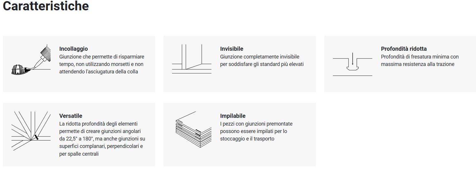 - Giunzioni angolari di pannelli con spessore a partire da 16 mm