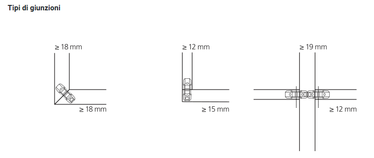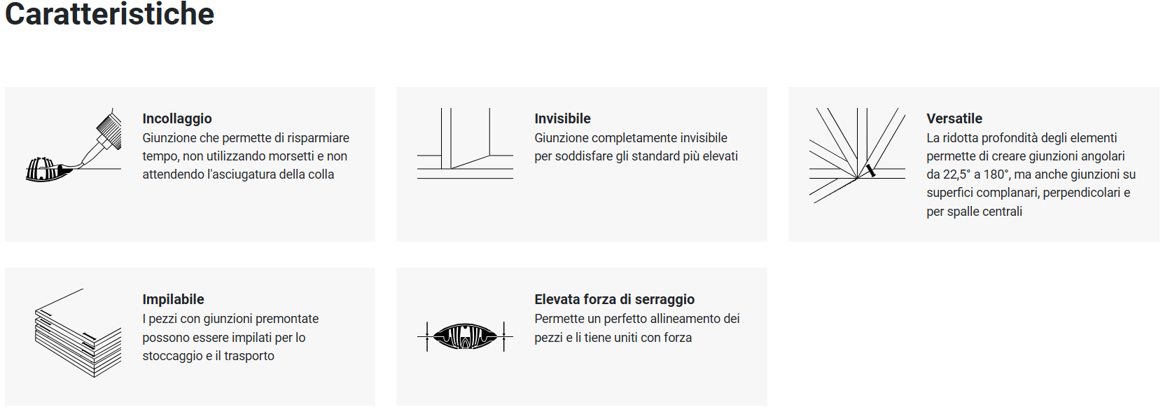• Giunzioni angolari di pannelli con spessore a partire da 18 mm
