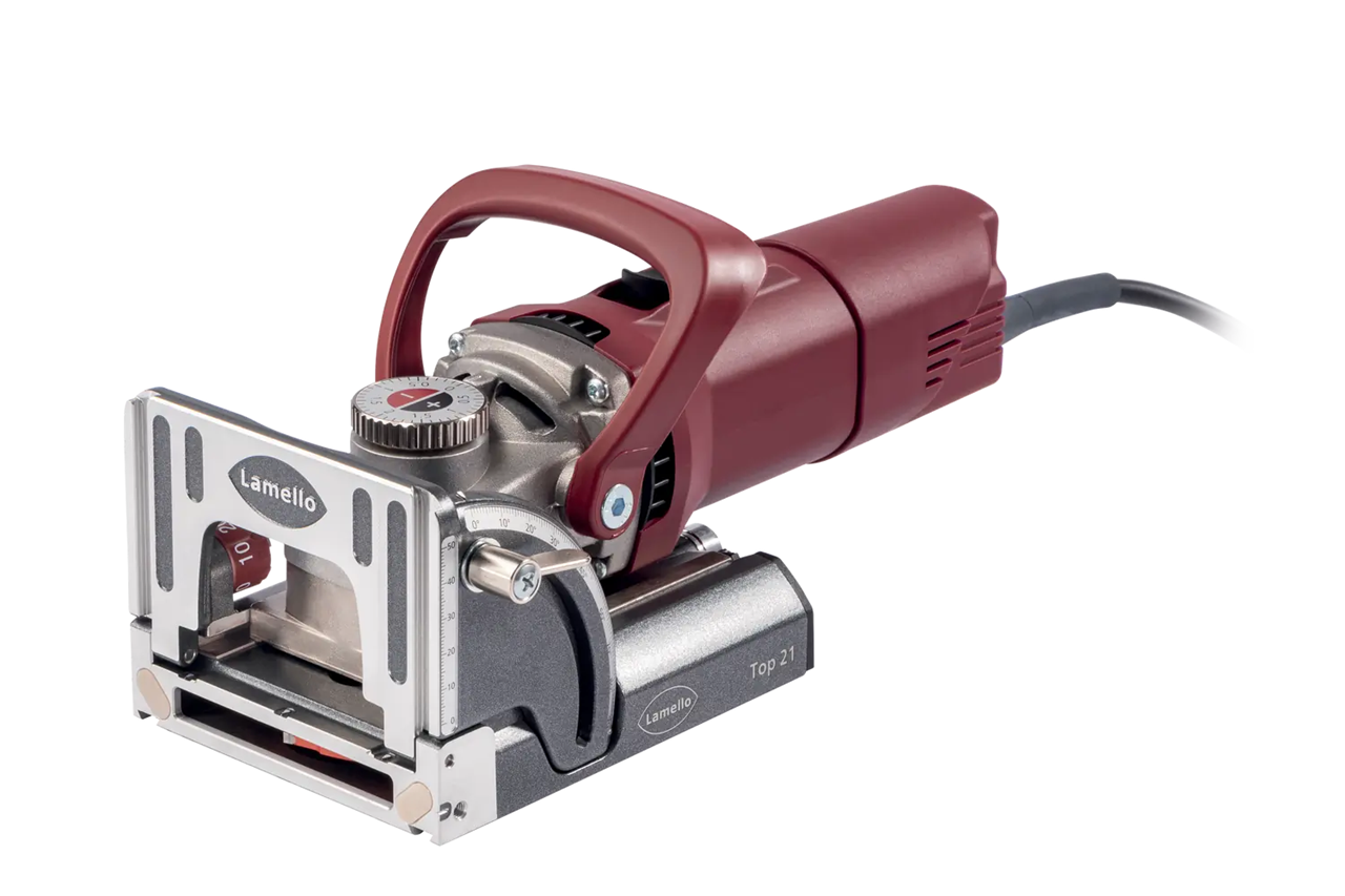 Top21 è la fresatrice con fresa regolabile dell'inventore del sistema Lamello che esegue una fresata precisa di 4 mm per le giunzioni in legno. La collaudata e sofisticata fresa a scanalare può essere utilizzata in modo rapido e versatile e costituisce la base per l'ampia gamma di giunzioni fisse, autobloccanti e smontabili. Il sistema Lamello è un sistema di giunzione estremamente efficiente e su misura per pannelli e consente la realizzazione di assemblaggi di mobili e angolari in ogni angolo. Come tutte le fresatrici per tasselli piatti di Lamello, anche la Top21 si contraddistingue per i componenti in alluminio lavorati con precisione, che consentono un posizionamento preciso sul pezzo e una perfetta precisione d'incastro. A differenza di qualsiasi altra fresatrice sul mercato, la Top21 dispone di un'esclusiva regolazione dell'altezza della fresa. A tale scopo, la fresa a scanalare è dotata di una manopola che consente di regolare la posizione della fresa in incrementi da 0,1 mm a 2 mm verso l'alto o verso il basso. Questa funzione permette, ad esempio, di realizzare la fresata in una piastra di 19 mm di spessore in posizione centrale (9,5 mm su entrambi i lati) anziché fuori centro (8 mm o 11 mm). Un'altra applicazione della fresa a scanalare è la semplice fresatura di giunzioni con sporgenze o rientranze. Quando si realizza una giunzione angolare in pannello truciolare rivestito, il lato viene riposizionato intorno all'arrotondamento del bordo in modo che lo strato di truciolare sul bordo non sia visibile. Questa rientranza è possibile con Top21 regolando la posizione della scanalatura in un batter d'occhio. Anche quando si tagliano scuretti su pannelli in legno o pavimenti in laminato, la regolazione della fresa è un vantaggio, in quanto consente di adattare la fuga risultante.