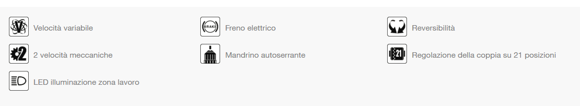 - Cambio meccanico a 2 velocità; Modalità ad alta velocità per una perforazione rapida in applicazioni leggere; Modalità a bassa velocità per applicazioni pesanti che richiedono una coppia elevata