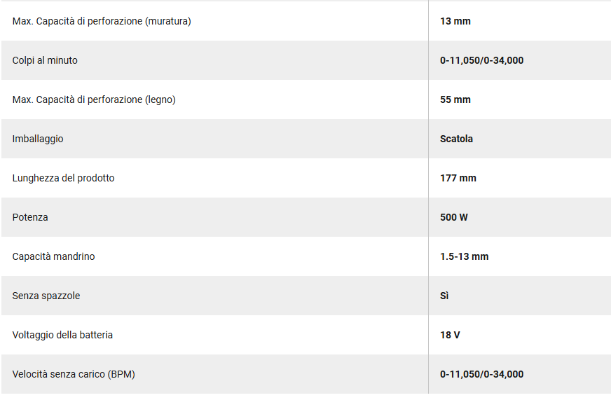MOTORE BRUSHLESS: Offre prestazioni elevate, prolunga la durata dell'utensile e consente un design molto più corto
