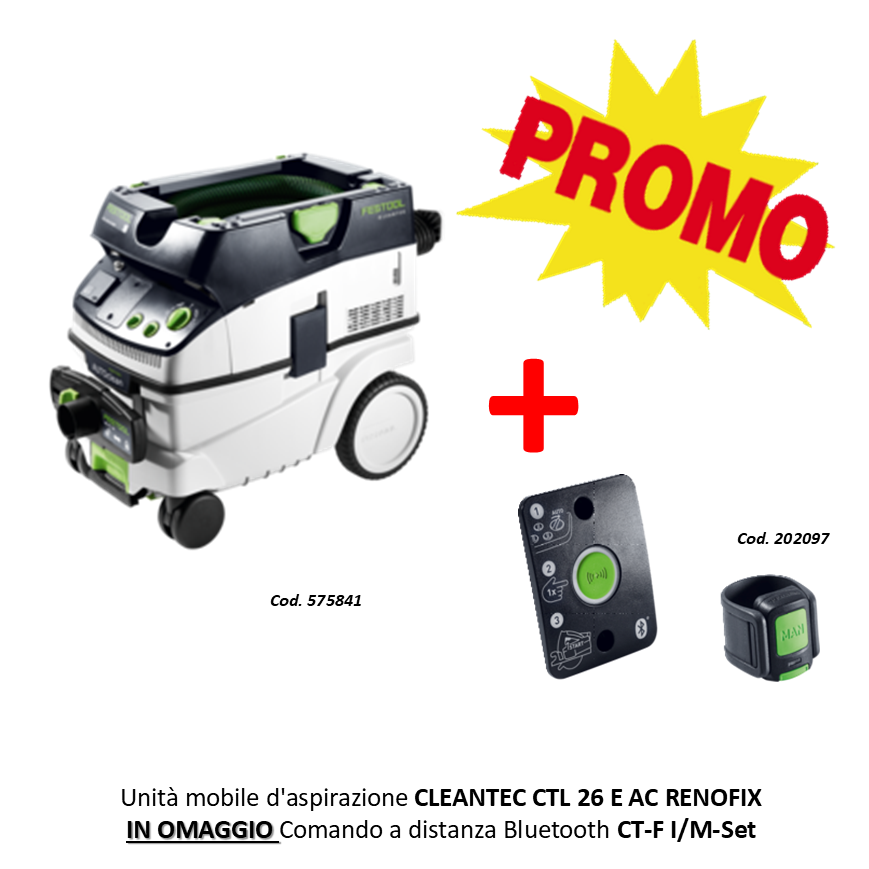 Festool mette a disposizione per l'aspiratore CTL 26 E AC RENOFIX moltissimi accessori di sistema per rispondere a qualsiasi esigenza come ad esempio il modulo pneumatico, il modulo EAA oppure Bluetooth.